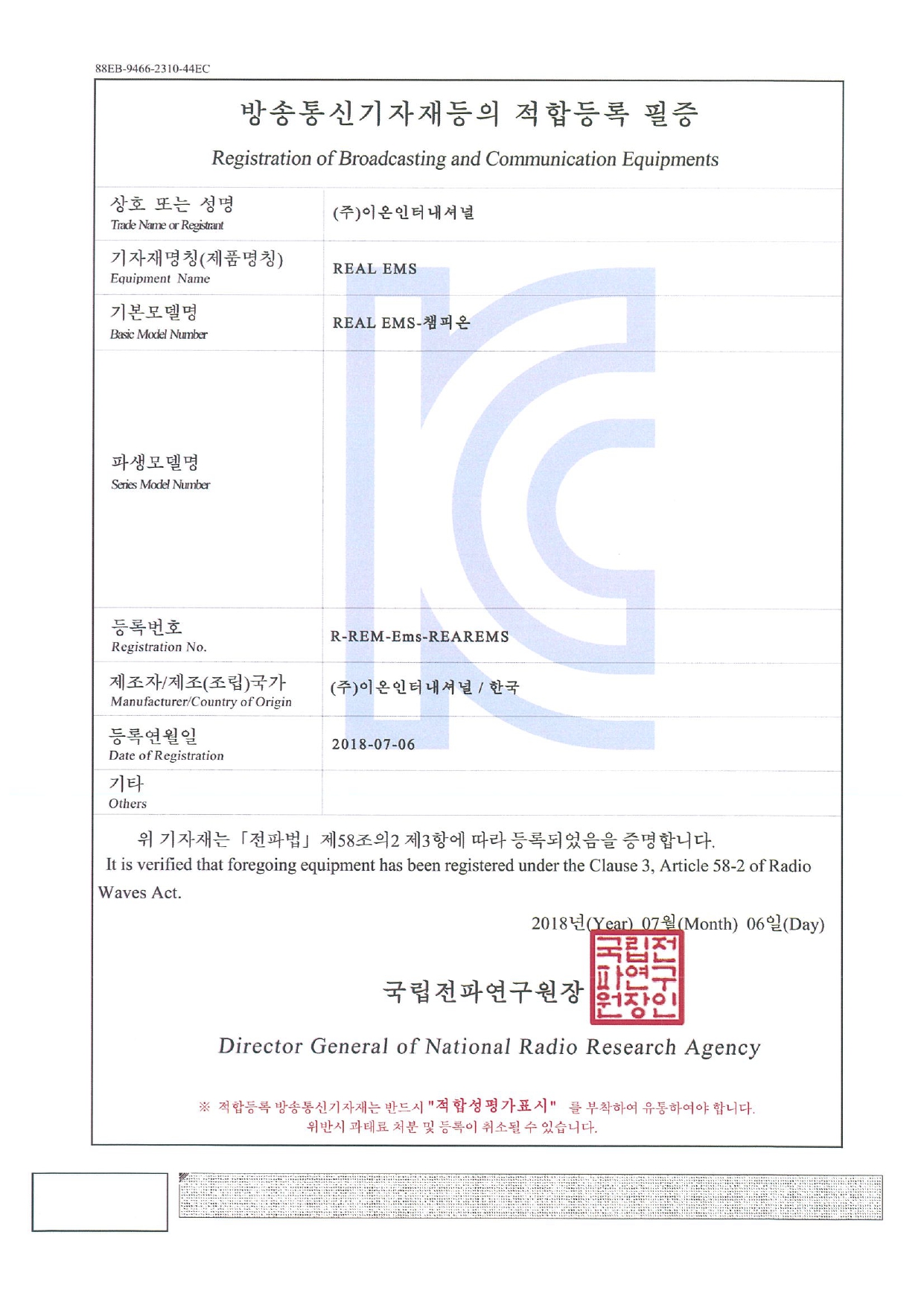 • Real EMS là sản phẩm công nghệ cao nhập khẩu từ Hàn Quốc, đạt chuẩn quốc tế với nhiều giấy chứng nhận chất lượng.